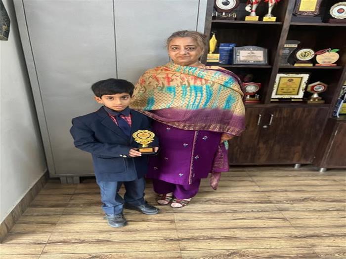 Parth of Class 4 proudly earned the Best Batsman title in the cricket match held at TDI City.